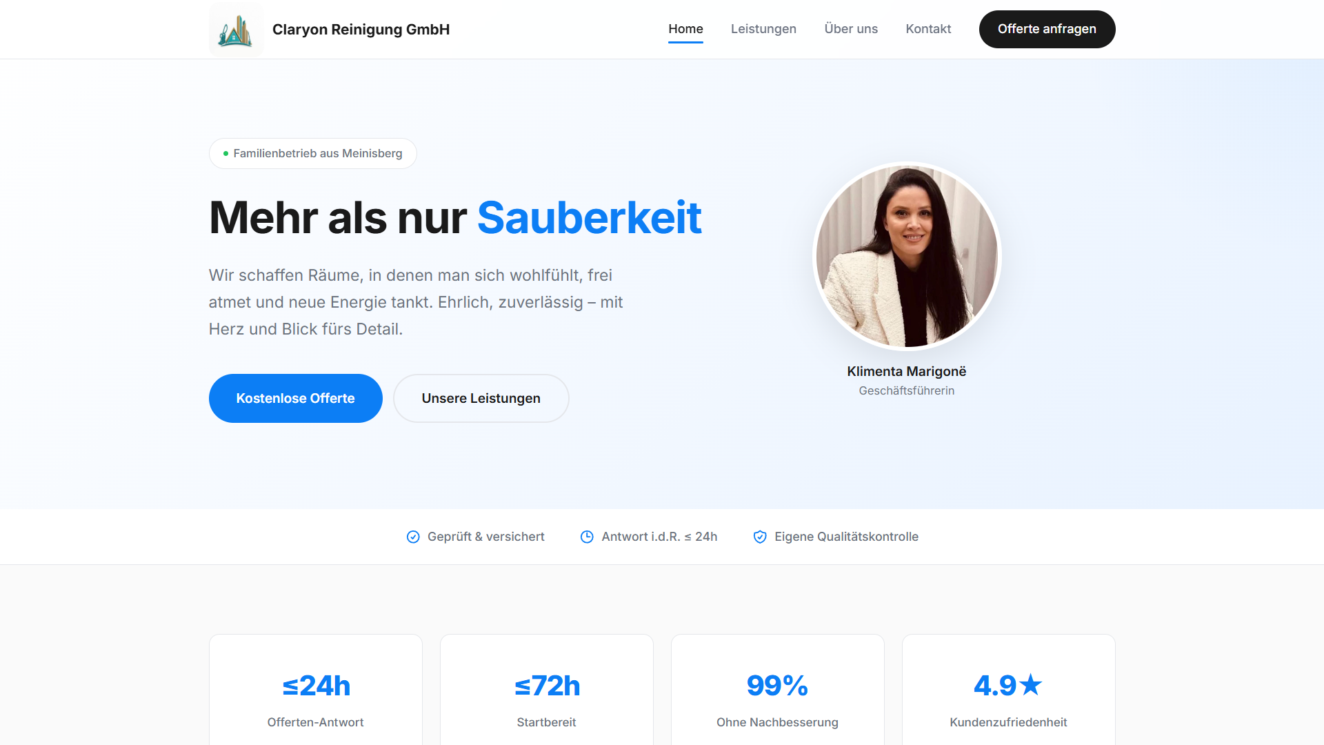 Moderne Seite mit klarem Aufbau, verständlicher Struktur und Fokus auf das Produkt.